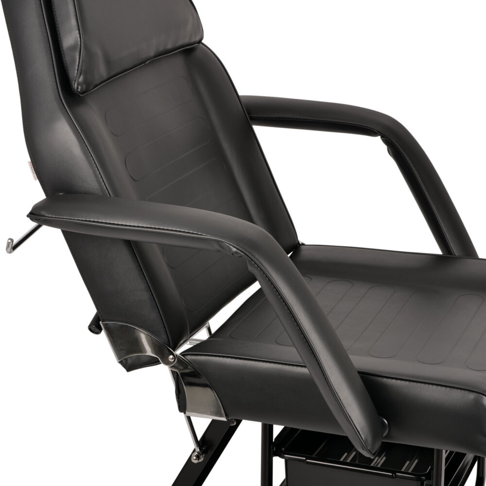 De ARIA NERO blinkt uit in flexibiliteit. Zowel de rugleuning als het voetgedeelte zijn handmatig verstelbaar, waardoor de stoel nauwkeurig kan worden aangepast aan verschillende behandelingen – van facials en massages tot pedicures en lichaamsverzorging. De volledige ligstand maakt de stoel geschikt voor ontspannende wellnessbehandelingen waarbij maximale comfortmomenten centraal staan.
