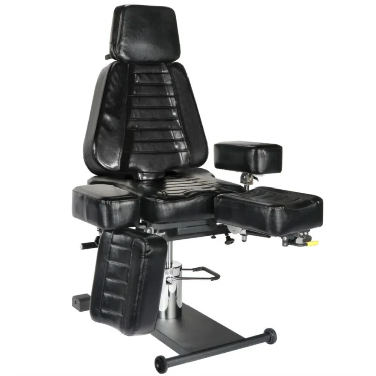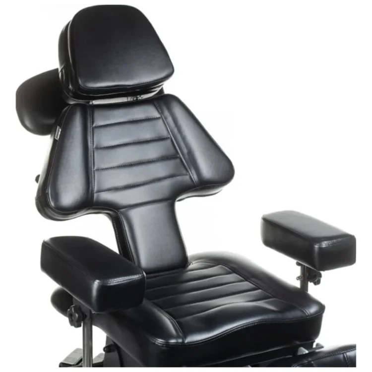 Aanpasbare armsteunen, beensteunen en voetpedalen maken het mogelijk om de stoel volledig af te stemmen op de cliënt en de behandelaar. Dankzij de veelzijdige verstelmechanismen is deze stoel geschikt voor een breed scala aan behandelingen, van pedicure tot tattoo, en ondersteunt hij verschillende lichaamstypes en behandelposturen.