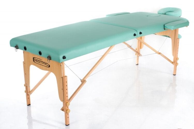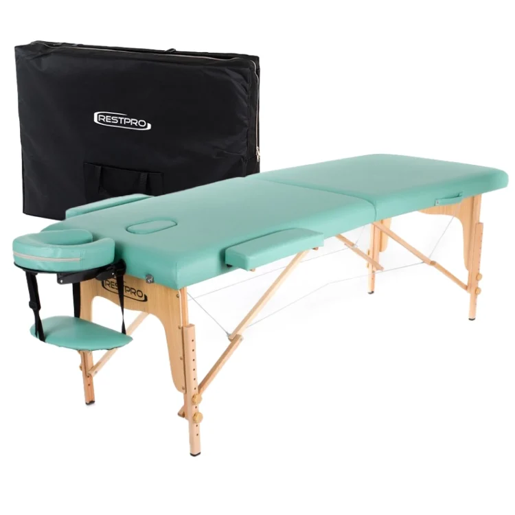 De RESTPRO Classic 2 in lichtblauw is een stijlvolle, inklapbare massagetafel met 2 verstelbare zones en een stabiel houten frame. De duurzame, olie- en waterafstotende bekleding maakt hem perfect voor professioneel gebruik onderweg of thuis.