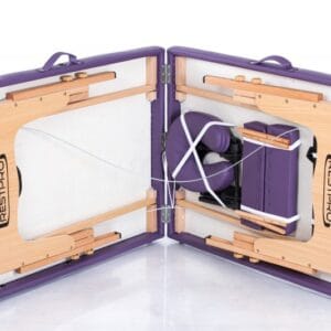De RESTPRO Classic 2 in paars is een stijlvolle, inklapbare massagetafel met 2 verstelbare zones en een stabiel houten frame. De luxe vinylbekleding is olie- en waterafstotend, waardoor de tafel perfect is voor dagelijks gebruik.